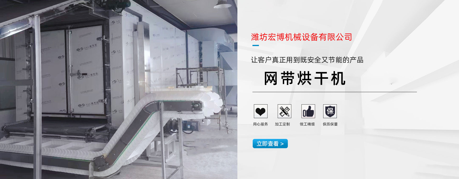 宏博公司主要產(chǎn)品有:網(wǎng)帶烘干機、食品烘干機、滾筒烘干機、隧道窯、烘干箱、燃氣熱風爐、高大車間供暖設(shè)備、礦用防爆電加熱器等。